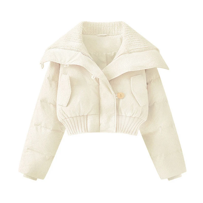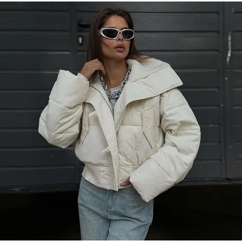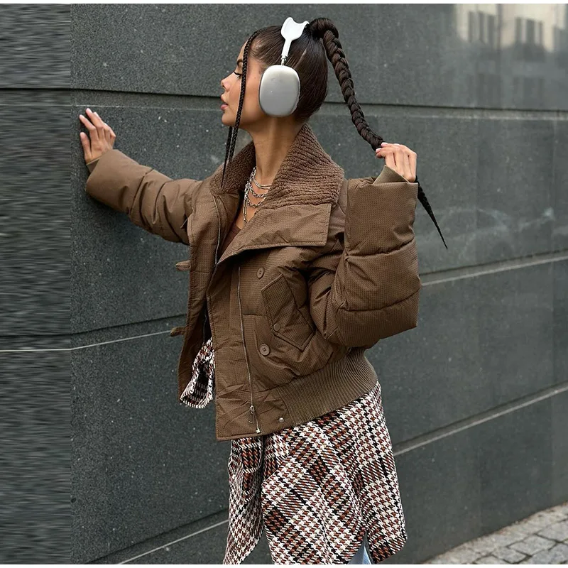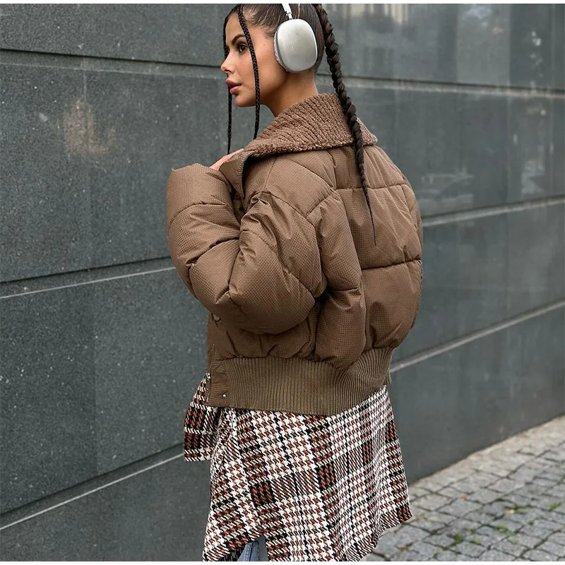 Casual Patchwork Short Coats Women Turn-down Collar Single Breasted Zippers Loose Thicken Coat Female 2025 Autumn Lady Outwears