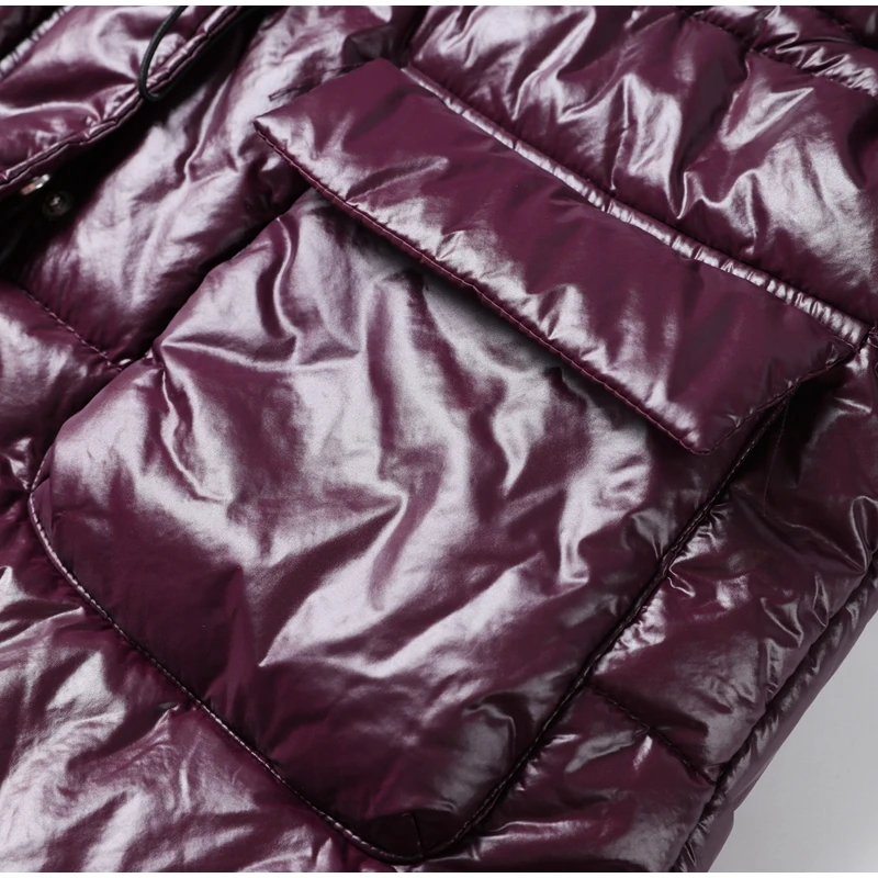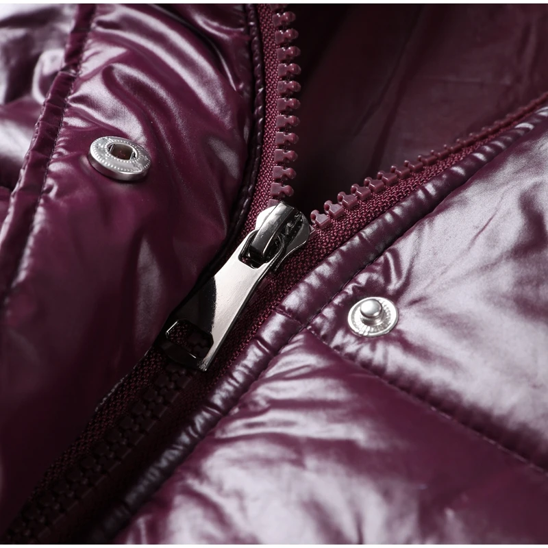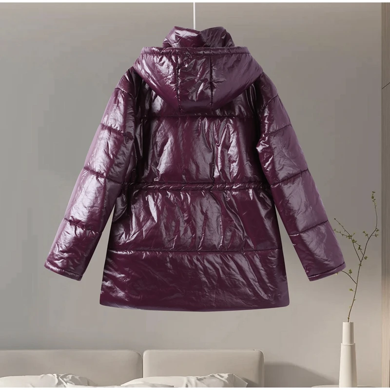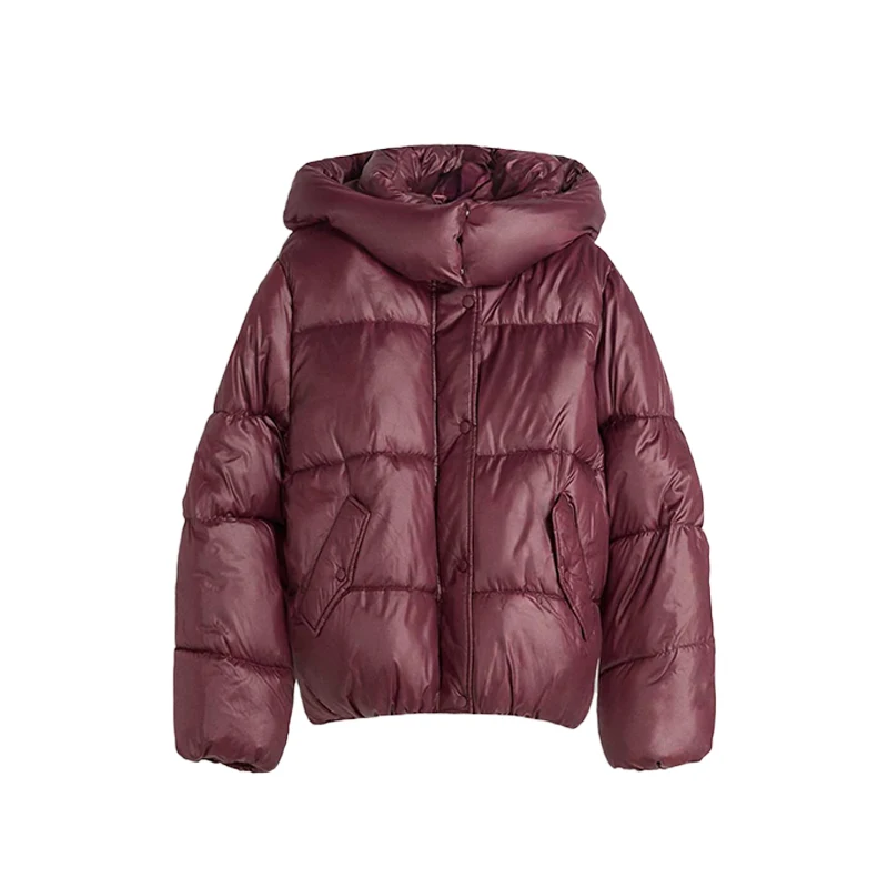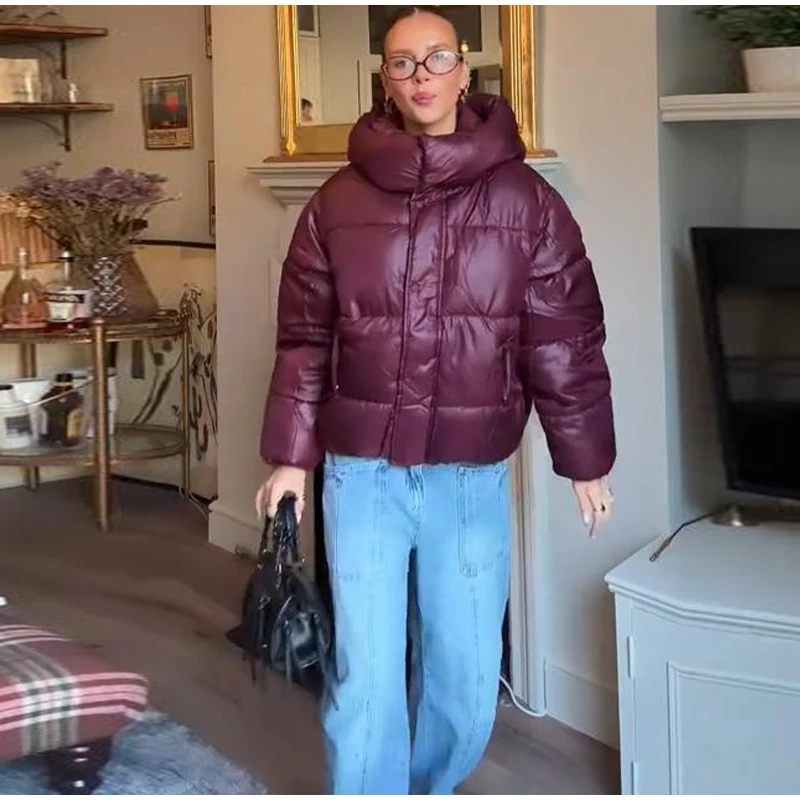 Winter Burgundy Warm Cotton Hooded Coats Women Fashion Stand Collar Zipper Thick Jacket Female Casual Commuter Outerwear 2025