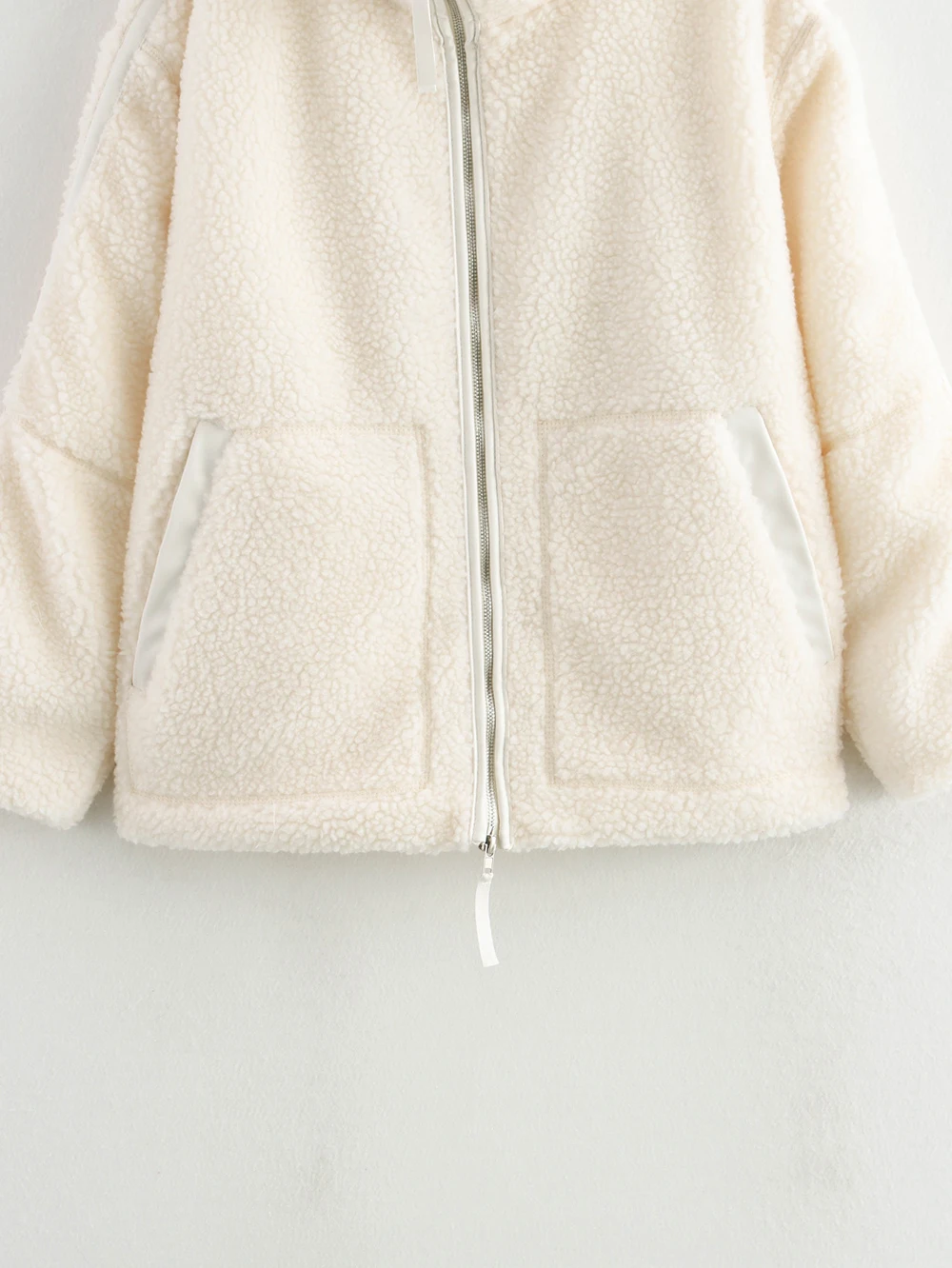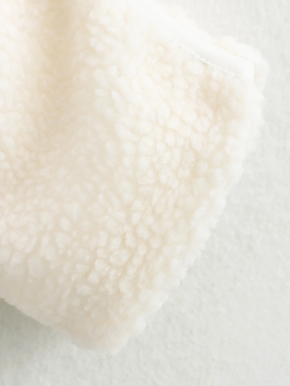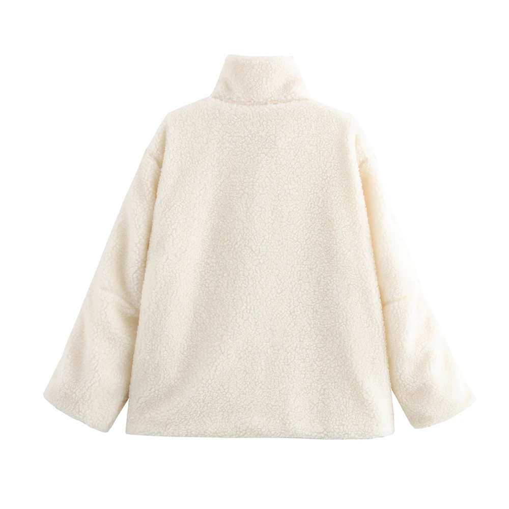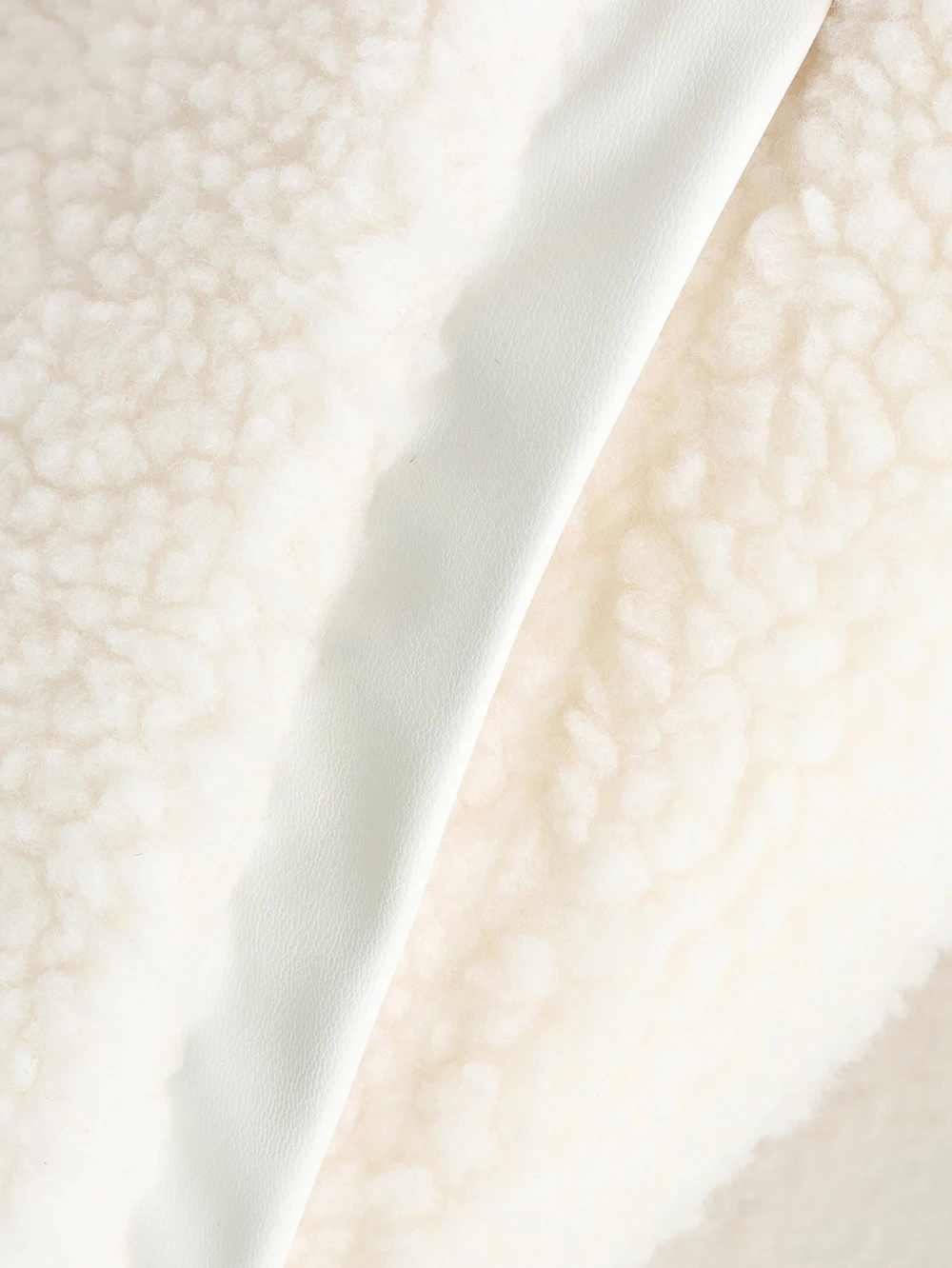 Fashion Women's Lamb's Wool White Coat Winter Fleece Reversible Lapel Coat Simple Loose Teddy Velvet Long Sleeve Jacket