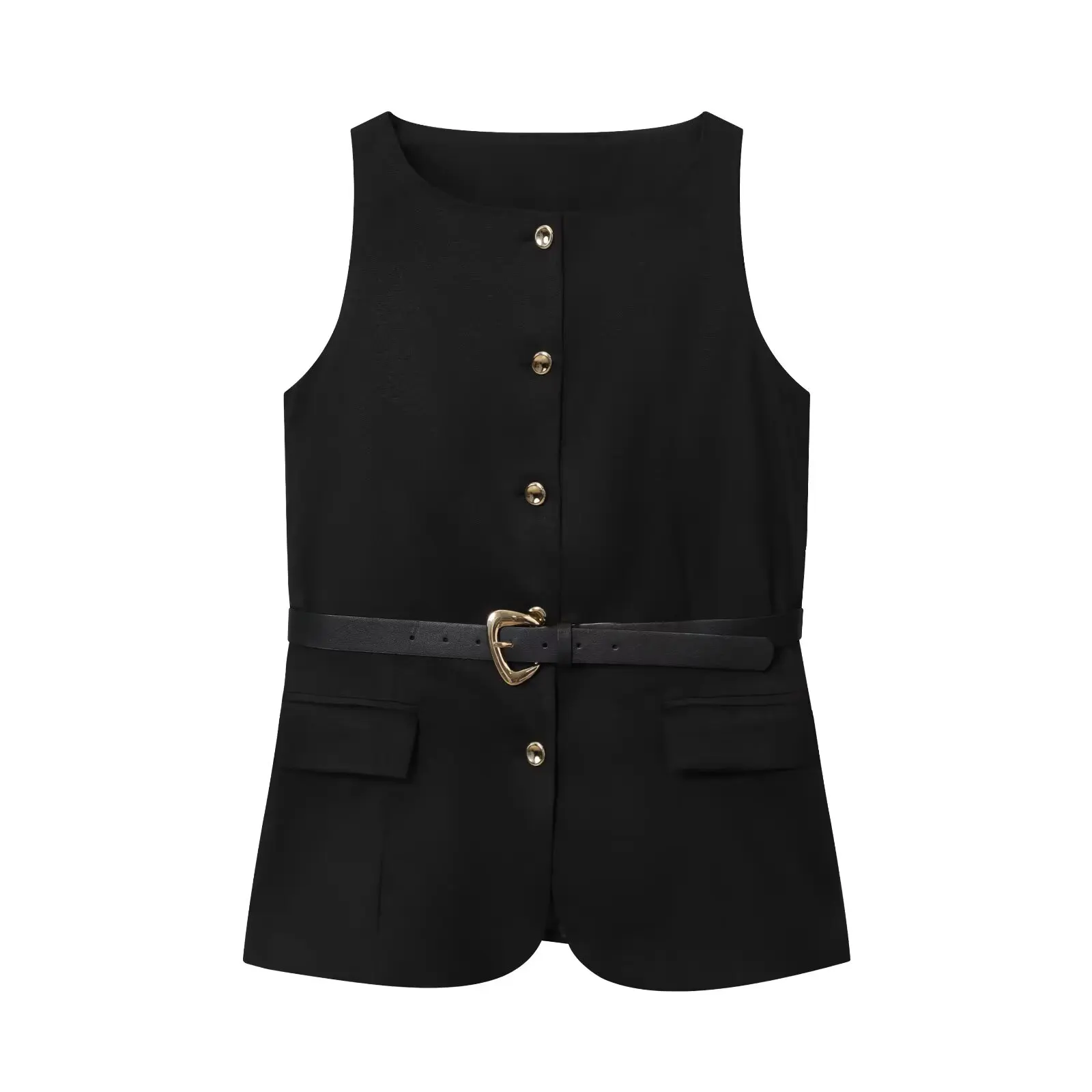 Tidalyf 2025 New Women Vest Round Neck Belted Sleeveless Top Single Button Elegant Chic Casual Fashion Outfit Autumn
