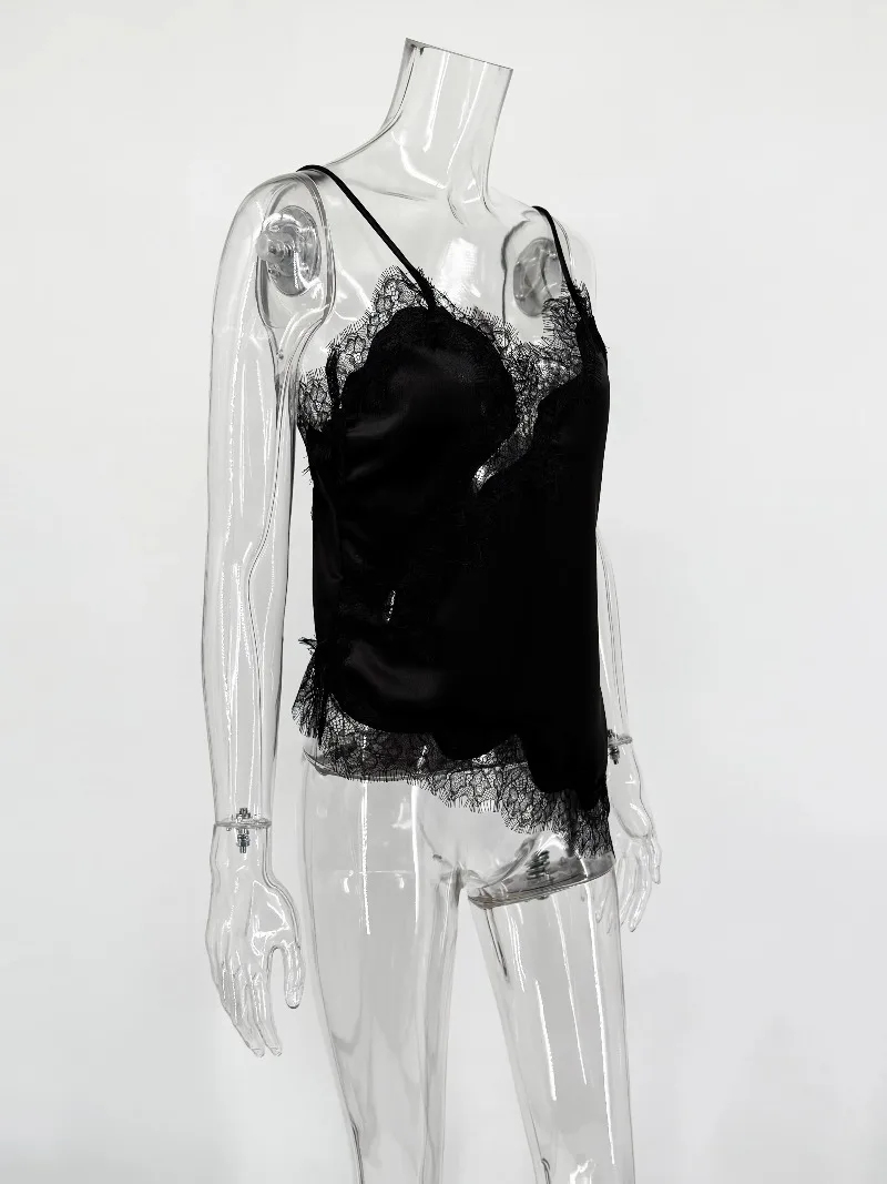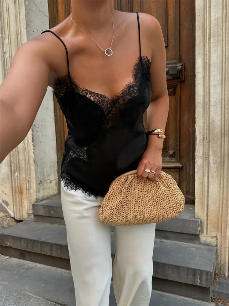 Tossy Lace Printed V-Neck Camisole Female Patchwork Backless Sexy Summer 2025 Fashion Cropped Y2k Top Women's Lace Tank Top Tee