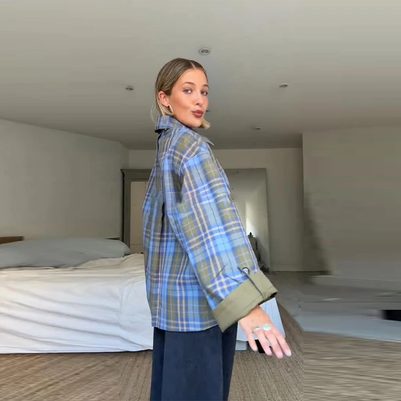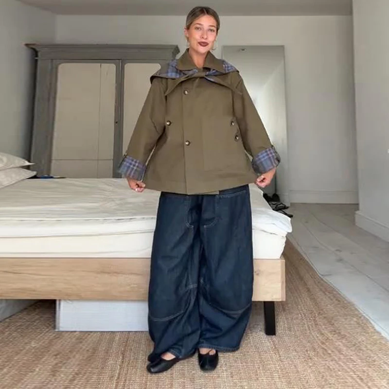 Vintage Plaid Embroidery Reversible Trench Coat Women Single Breasted Pocket Long Sleeve Jacket 2025 Autumn Lady Streetwear