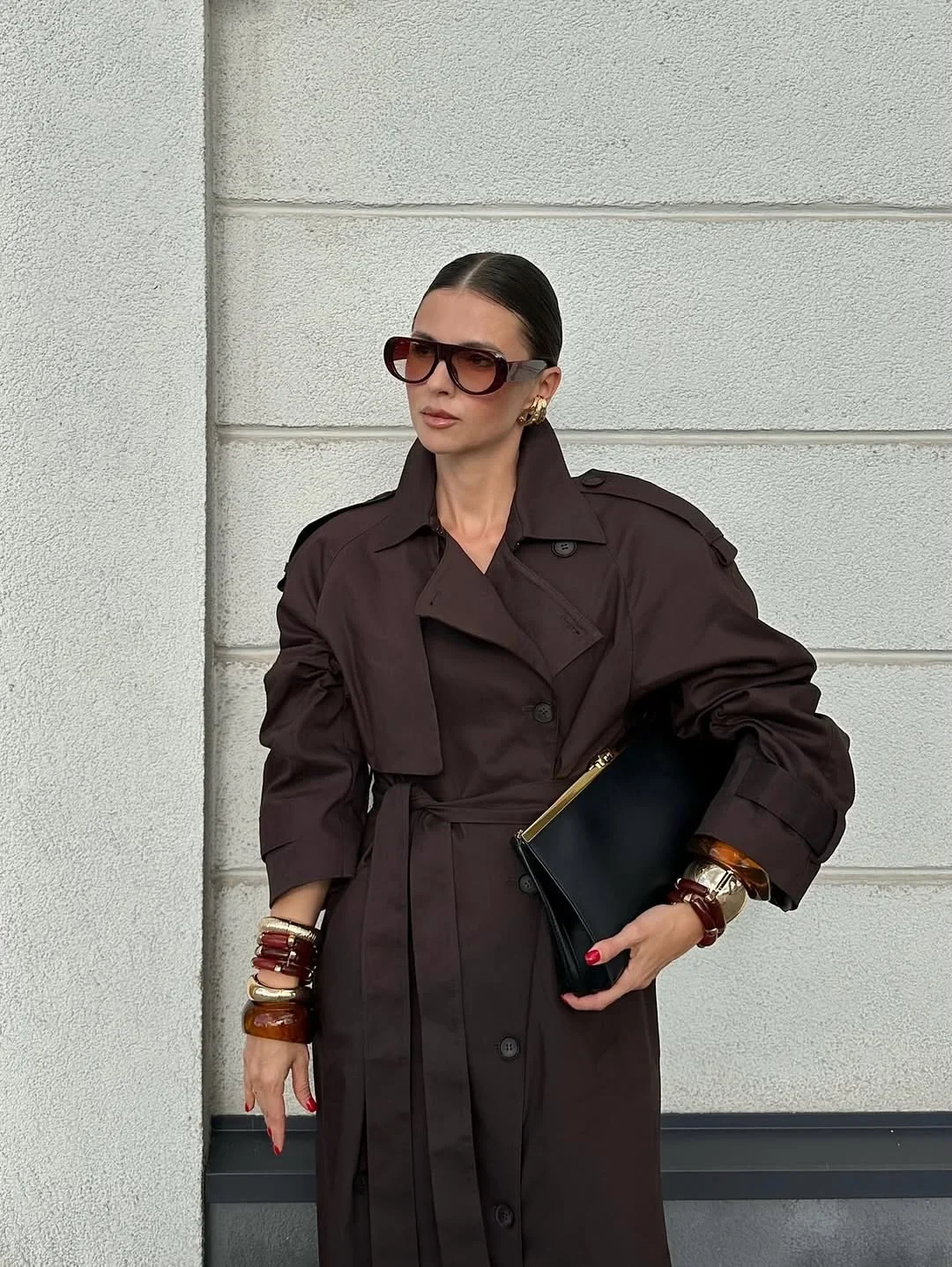 With its high waist and turn-down collar, this trench coat adds an elegant touch to your autumn wardrobe.