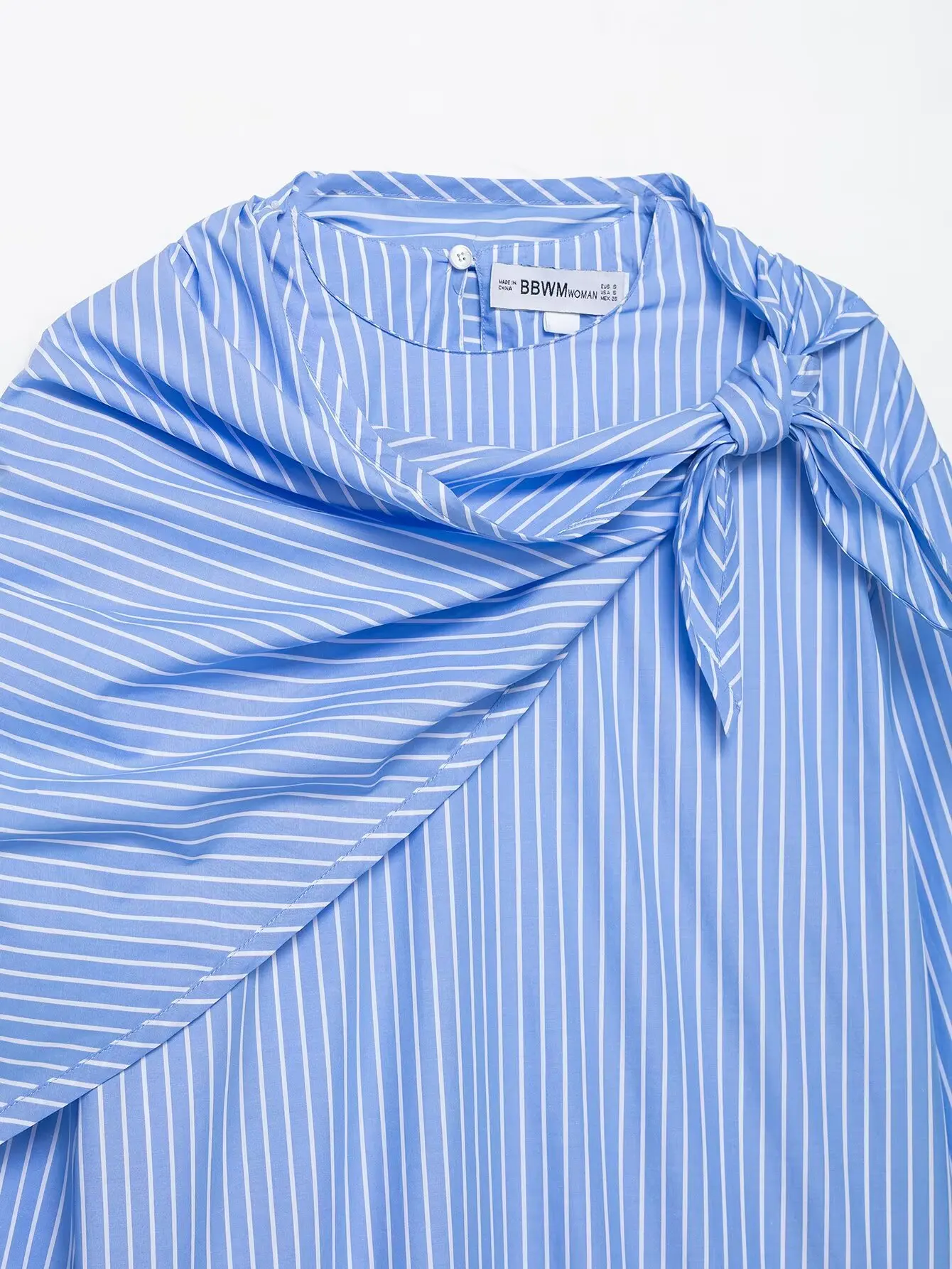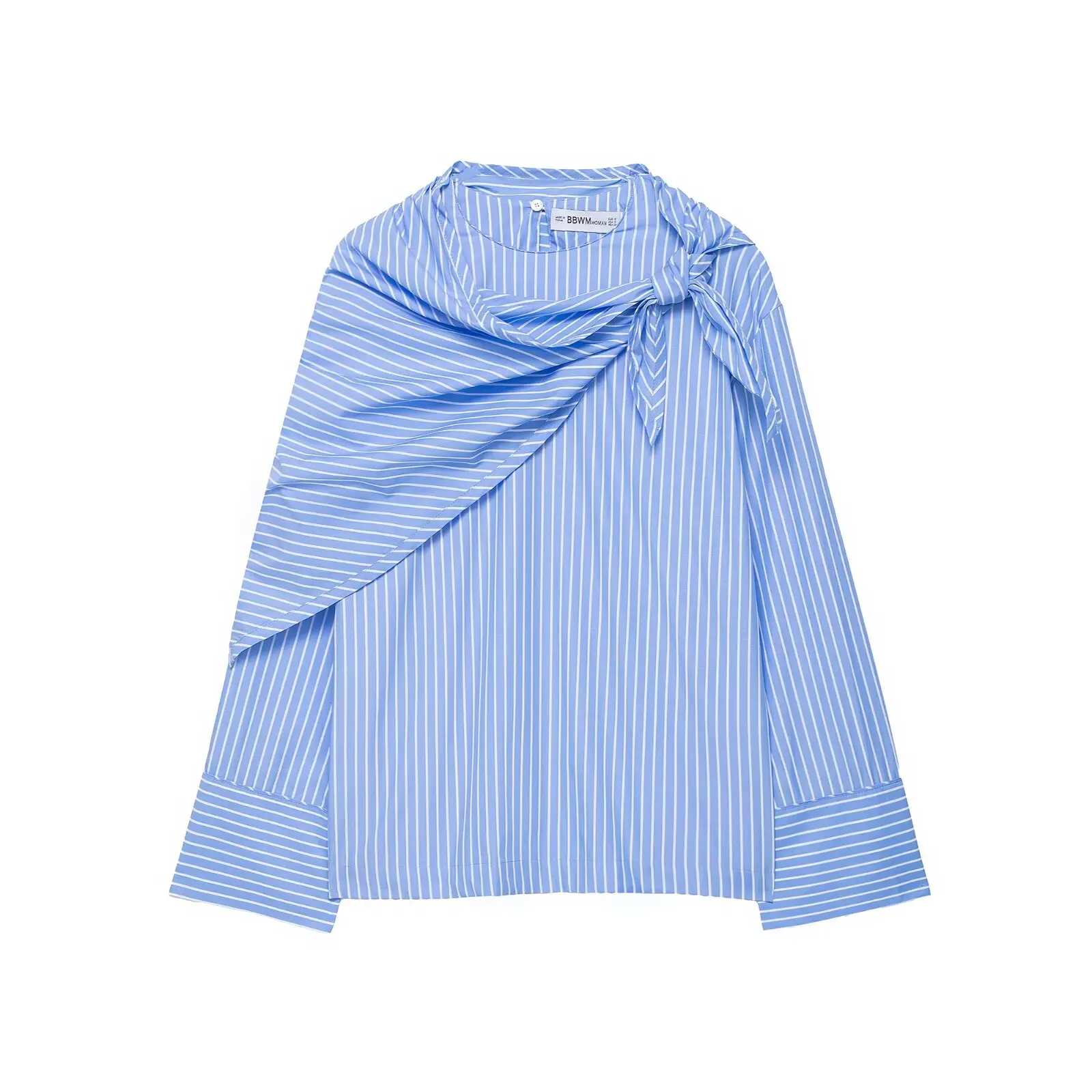 Women Casual Striped Print O-Neck Shirts Women Long Sleeve Office Lady Shirts Fashion Autumn Wear Scarf Blouses Top