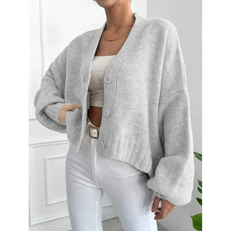Knitted Cardigan Women's 2025 Autumn And Winter New Item Casual Loose V-neck Lantern Sleeves Knitted Sweater Women