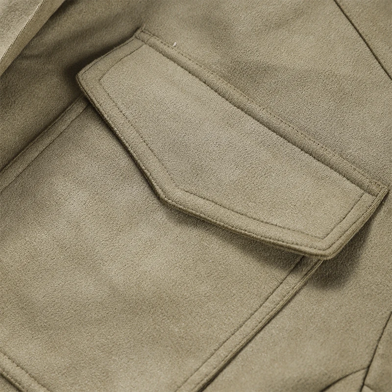 Slip into this khaki jacket! Lapel collar, epaulets, and suede - like texture embody retro - cool, elevated charm. The khaki tone and classic design make it a go - to piece—easy to dress up or down for unforgettable, trendy style.