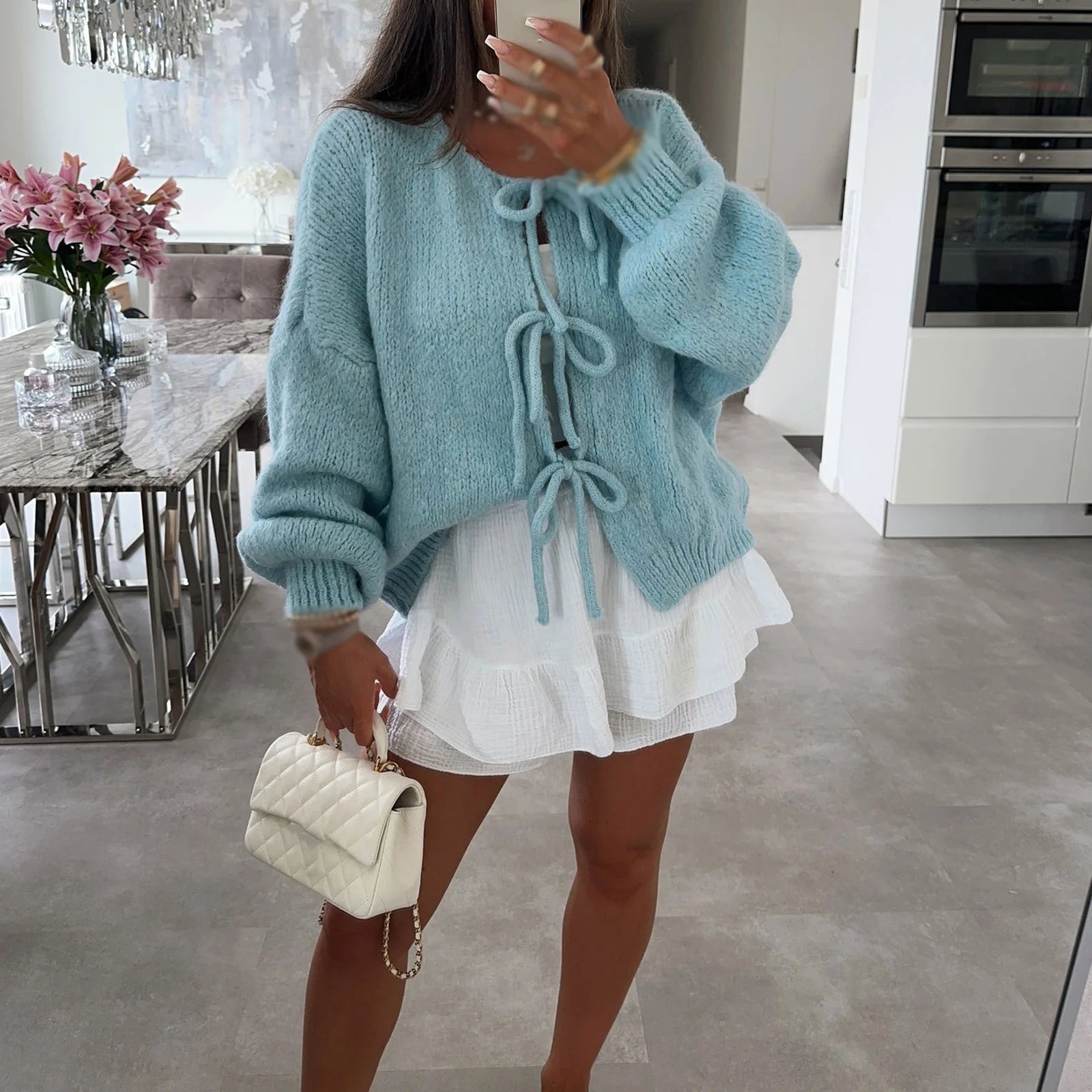 Women Knit Cardigan Long Sleeve Tie-up Solid Fall Casual Jacket Sweater StreetwearA perfect addition to your cool-weather wardrobe, easy to go and fit with other clothes.